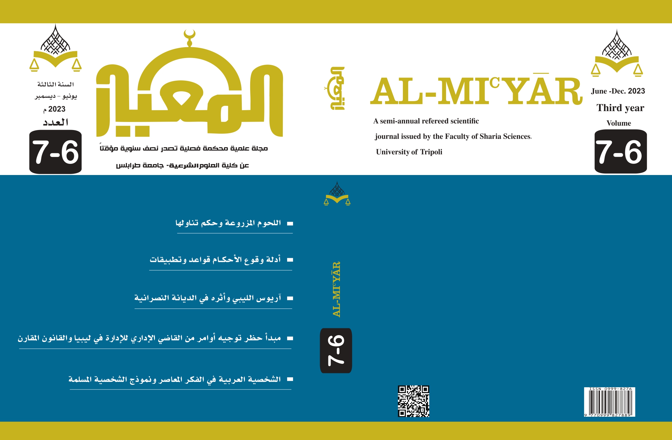 مجلد 6 عدد 7-6 (2023): مجلة المعيار كلية العلوم الشرعية تاجوراء